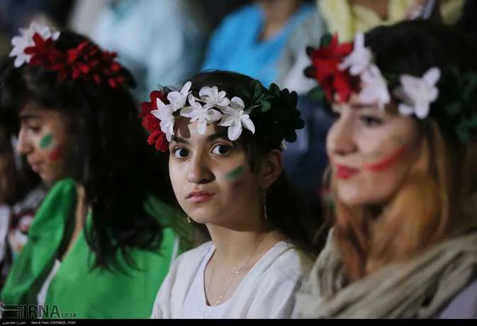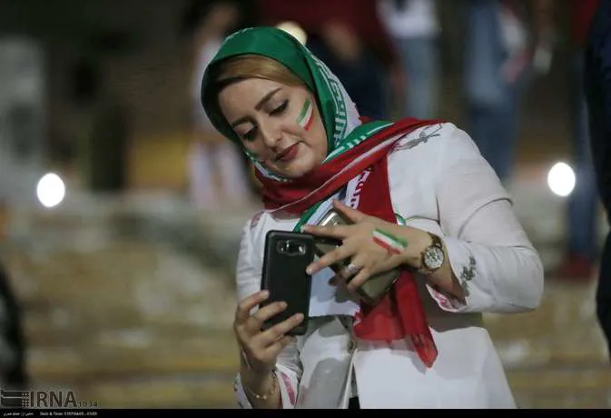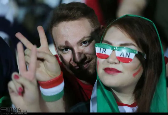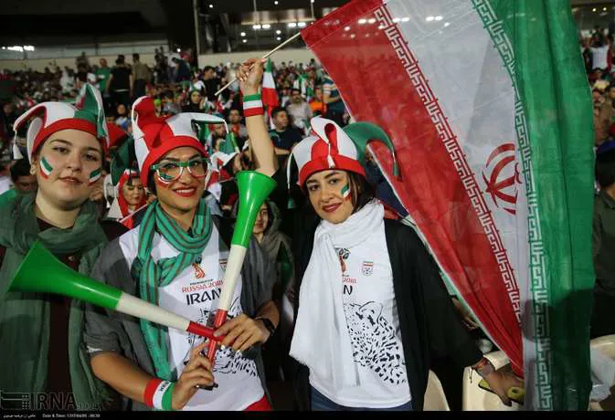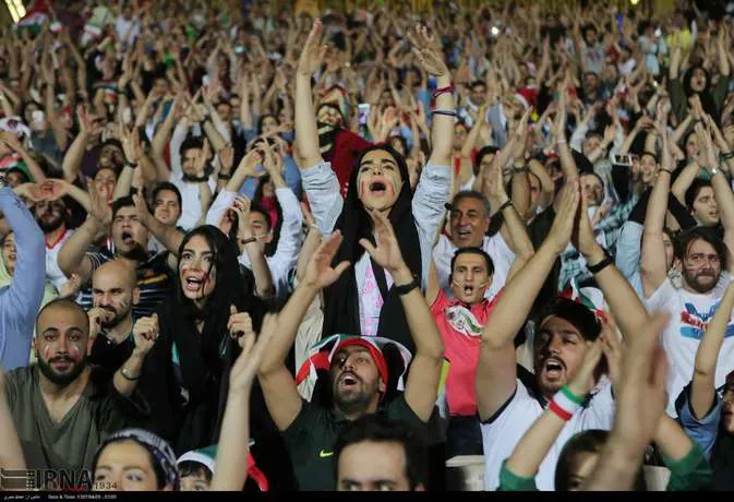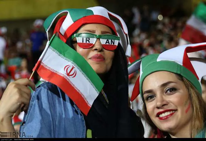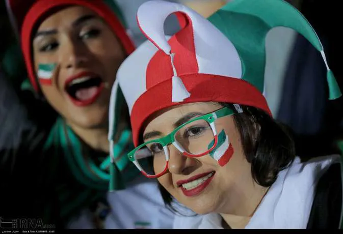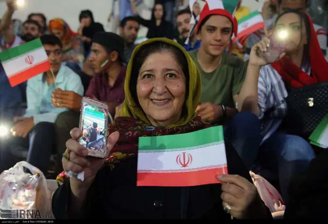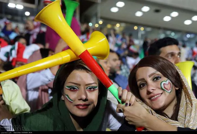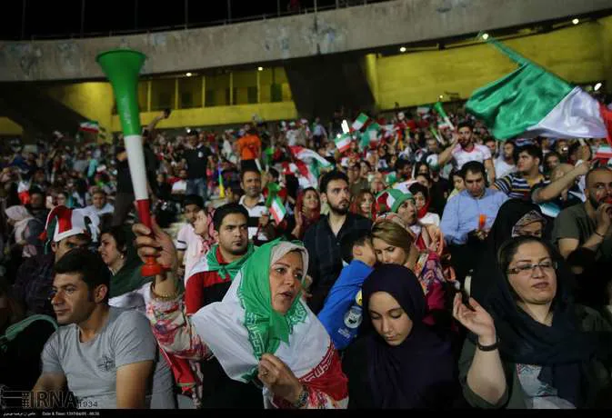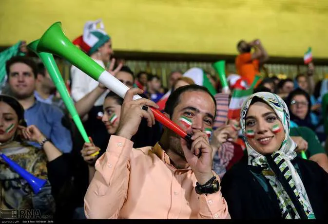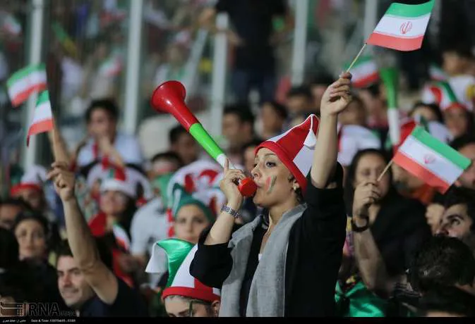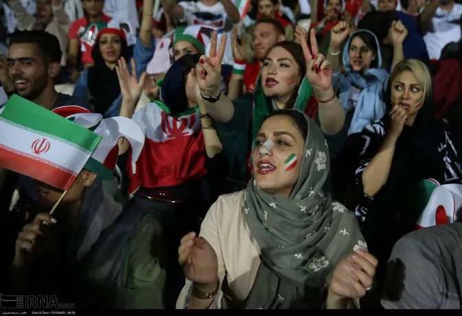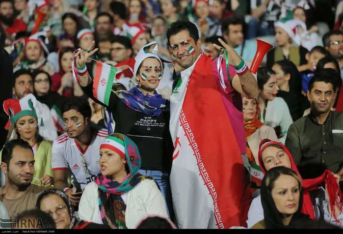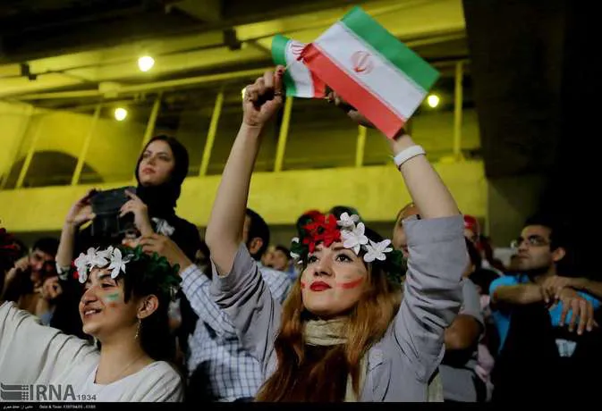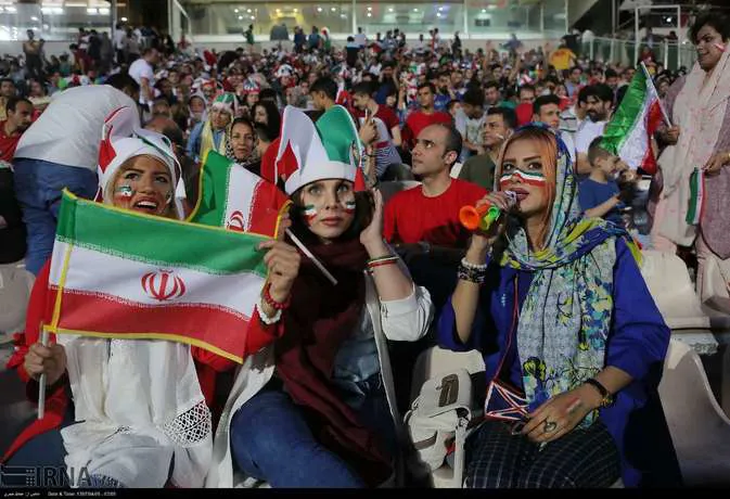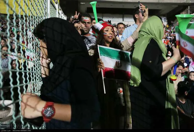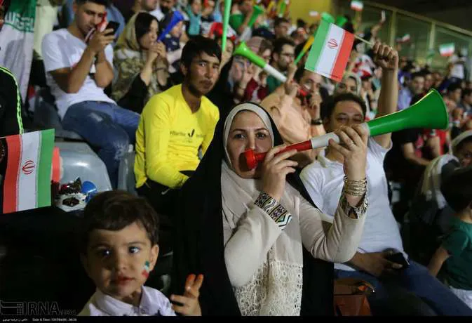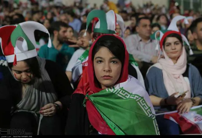 تعدادی از زنان تهرانی به همراه خانواده هایشان دوشنبه شب در ورزشگاه آزادی دیدار تیم های ایران و پرتغال را تماشا کردند